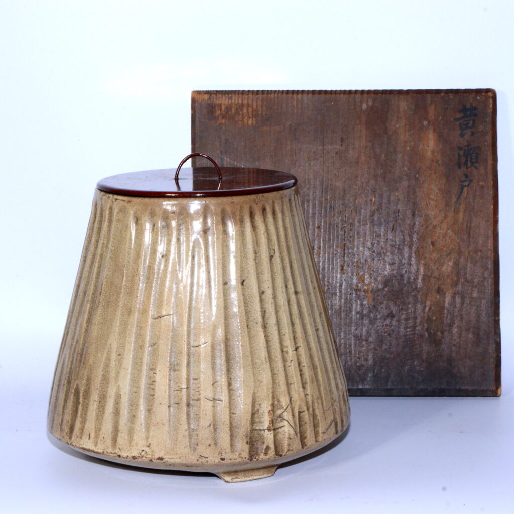 Antique Kizeto (Ko-Seto) Mizusashi – Japanese Tea Ceremony Water Jar with Box