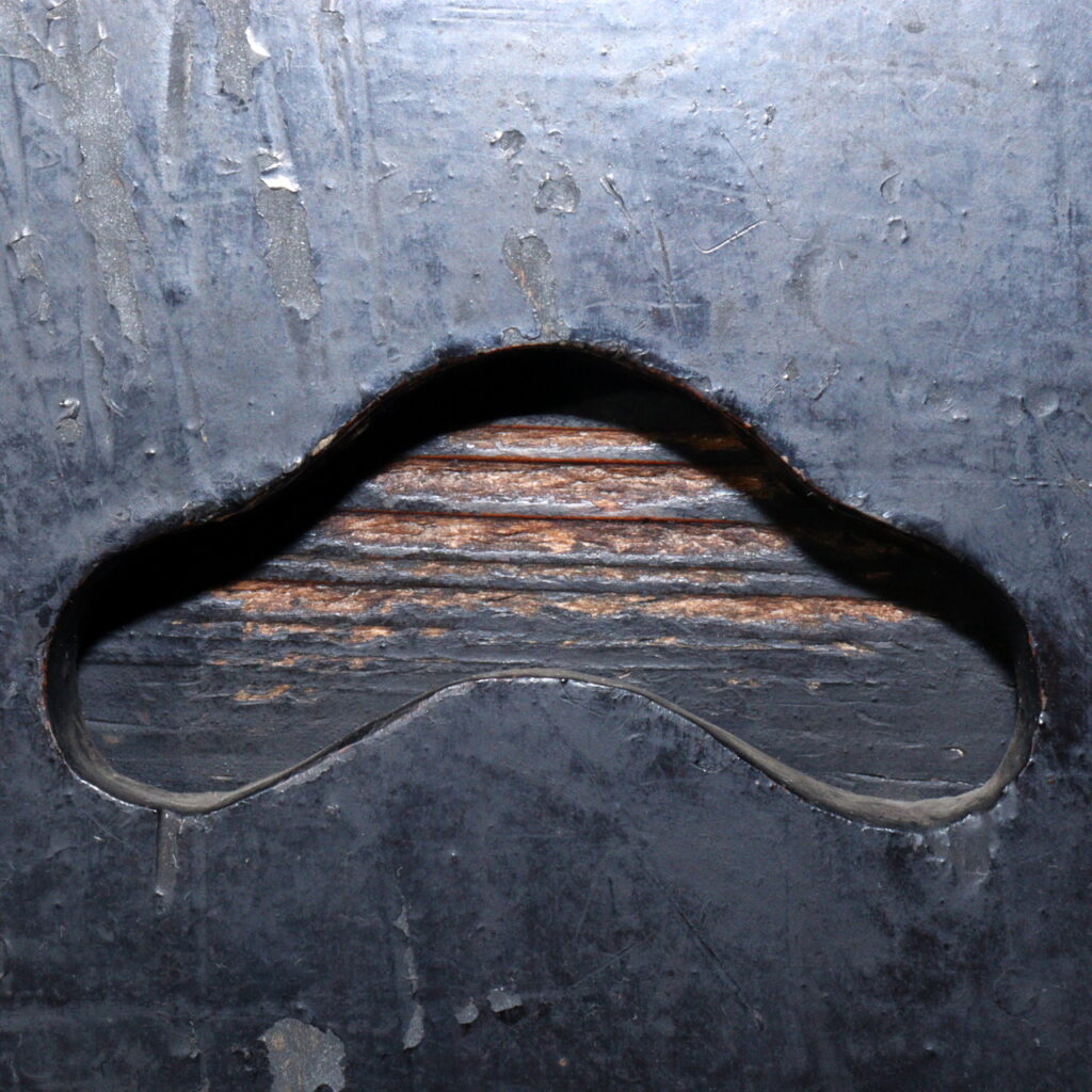 Its black lacquer coating (urushi-nuri) was both protective and symbolic: the color represented formality and dignity. Over time, the lacquer has mellowed to a warm sheen, its surface showing gentle wear that reveals the life it has lived. The detached metal fittings on the handle tell their own story—signs of genuine age and use that enrich rather than diminish its character.