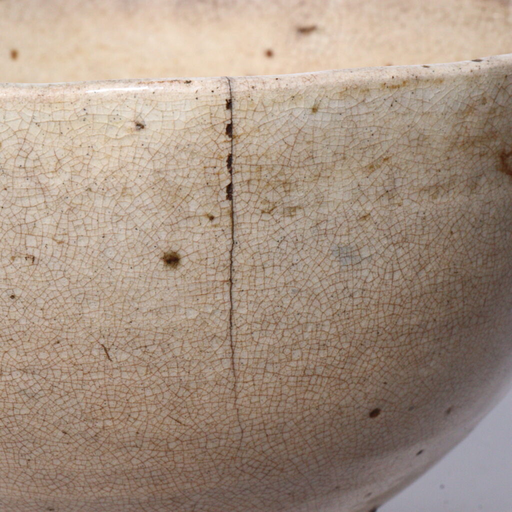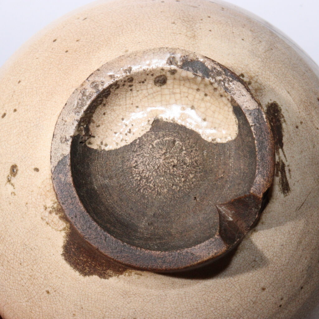At first glance, the bowl’s form feels simple. Yet, upon closer inspection, it reveals layers of quiet sophistication. The soft, milky glaze displays a fine network of kannyū (natural crackle), a hallmark of Hagi ware’s evolving patina. Faint iron freckles and minute glaze drips speak to the potter’s hand and the unpredictable magic of wood-fired kilns.
