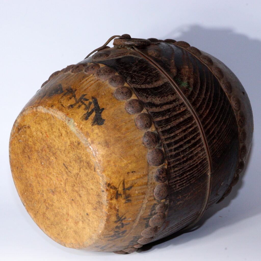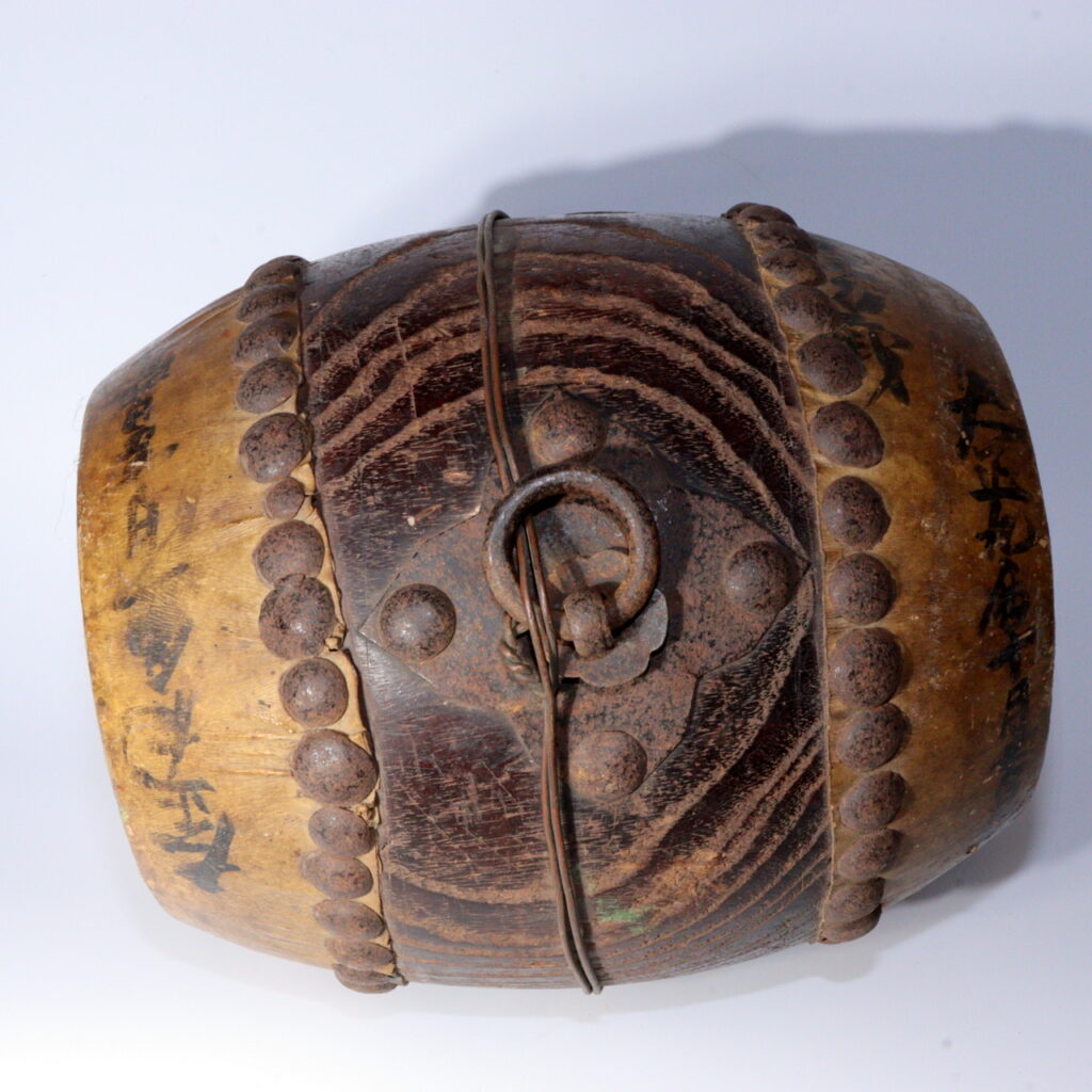 This Taishō-era shrine drum preserves not only sound but time—a rare combination of material honesty, ritual function, and elegant simplicity that defines the best of traditional Japanese design.