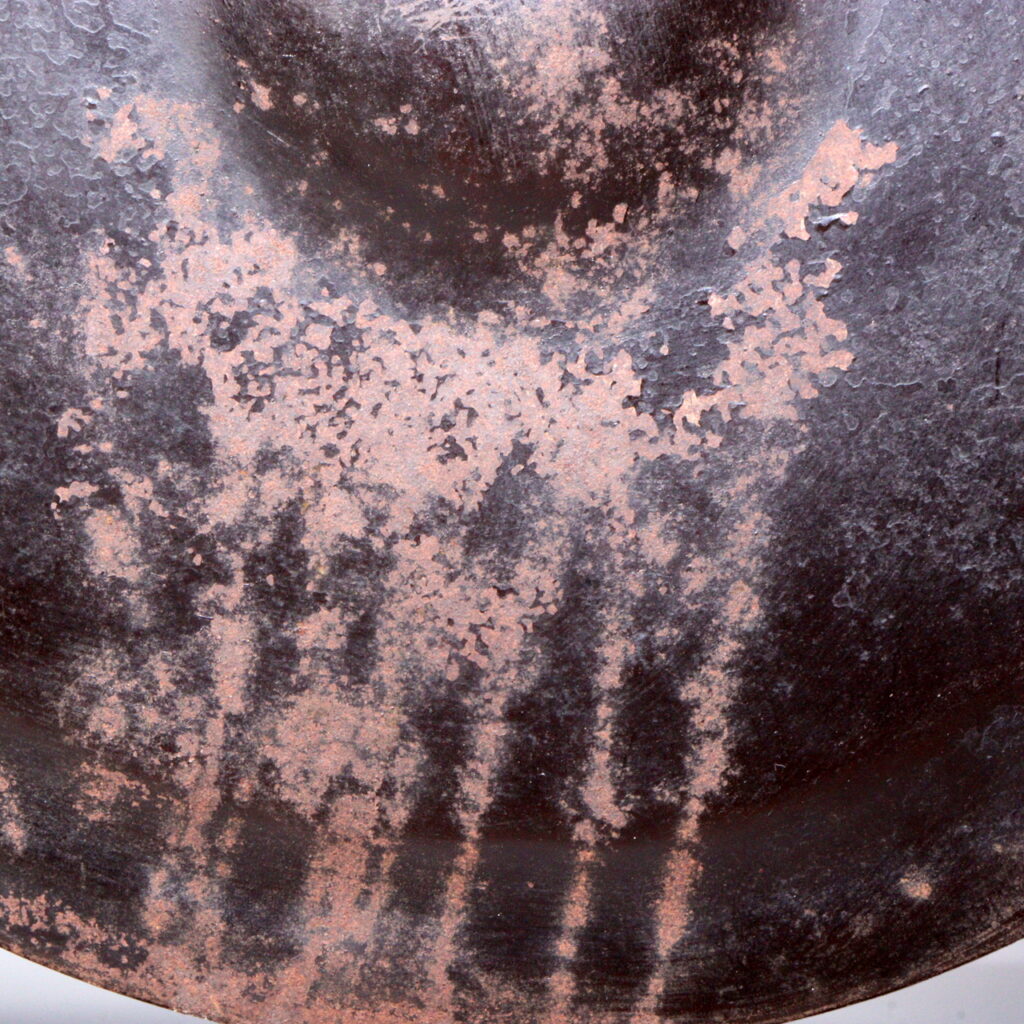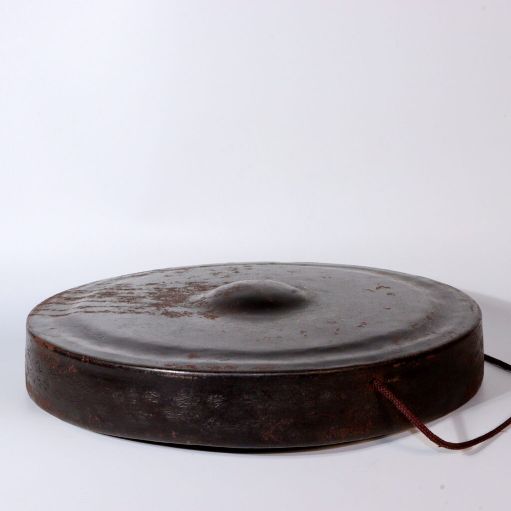 This vintage temple gong is a masterpiece of traditional Japanese metalwork. Forged from heavy iron with a slightly domed center, it produces a profound and sustained resonance that embodies the harmony of sound and emptiness. Over time, the surface has developed a natural patina—dark tones of black and russet that speak of age, devotion, and atmospheric exposure within temple interiors.