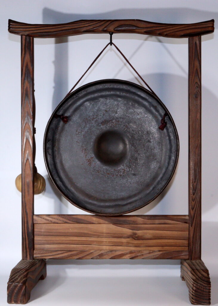 The Dora gong holds a long history within Japanese Buddhist culture, tracing back to the Edo and Meiji periods when temple instruments were central to daily rituals. Unlike the large bronze bells (bonshō) that called monks to prayer, the Dora was used within temple interiors—to begin meditation, accompany sutra chanting, or announce ceremonial transitions.